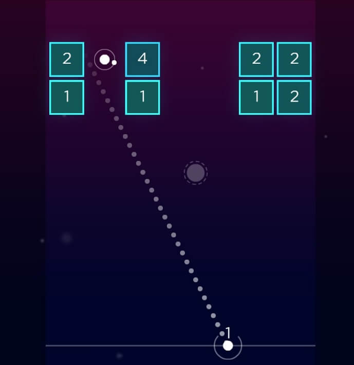 In the Ballistic Game a white ball is located at the bottom of the page. You need to aim it at the squares that are descending from the ceiling. You can burst a square marked with the number 1 with 1 shot. To destroy a square marked with the number 2, you’ll need 2 shots and so on. Tap and drag to shoot! Try to free more balls that come from the top to make your shots more effective.